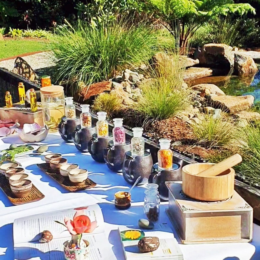 Dialogue with plants and pollinators in an intimate sensory journey into the garden's classroom. Make your own handmade flower infused creations to merge with the intelligence of plants that help recalibrate your whole being to a state of harmony.